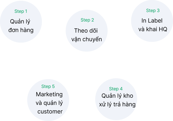 Từ quản lý đơn hàng, logistics, vận chuyển, chăm sóc khách hàng đến marketing chỉ trên một hệ